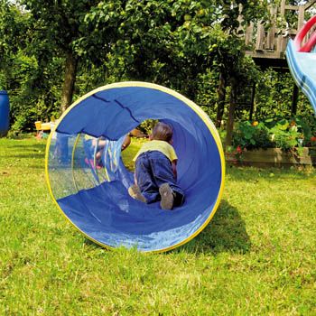 Er besitz einen 25 cm breiten transparenten PVC Streifen, der das Innere des Tunnels erhellt. Kinder brauchen sich also nicht zu fürchten, denn man kann nach außen sehen.