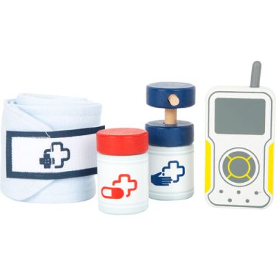 Salbentube, Stethoskop, Skalpell, Pinzette, Funkgerät